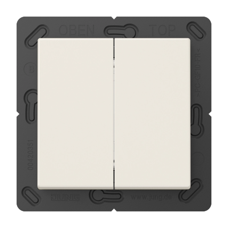 JUNG Friends of Hue 4-kanaals slimme lichtschakelaar voor draadloze bediening van Philips Hue-lampen. Geschikt voor schakelen, dimmen en bedienen van maximaal 4 lichtscènes. Excl. afdekraam.