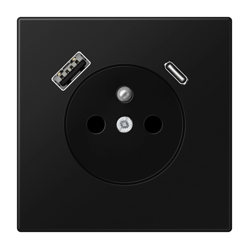JUNG wandcontactdoos penaarde Safety+ met USB type A en C LS990 grafietzwart mat (LS 1520 F-15 CA SWM)