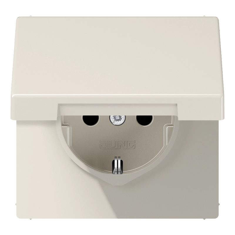 Wandcontactdoos met randaarde, verhoogde aanraakbeveiliging en klapdeksel. Serie: LS 990, kleur: crème.