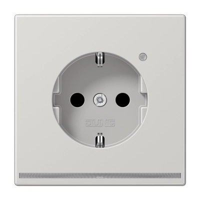 JUNG stopcontact met randaarde, Safety+ (kinderbeveiliging), LED-oriëntatieverlichting (3500 Kelvin) en geïntegreerde lichtsensor, LS 990, lichtgrijs. Verbruik: stand-by 0,3 Watt / in bedrijf 0,5 Watt. Bedrading aansluiten met insteekklemmen. Vereist een diepe inbouwdoos (min. 50 mm). Thermoplast (hoogglans). Excl. afdekraam.