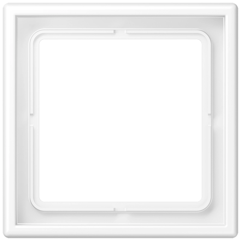 JUNG 1-voudig afdekraam, voor horizontale en verticale montage, LS 990, sneeuwwit mat. Afm.: 81 x 81 x 11 mm. Duroplast, zeer krasvast (mat gelakt).