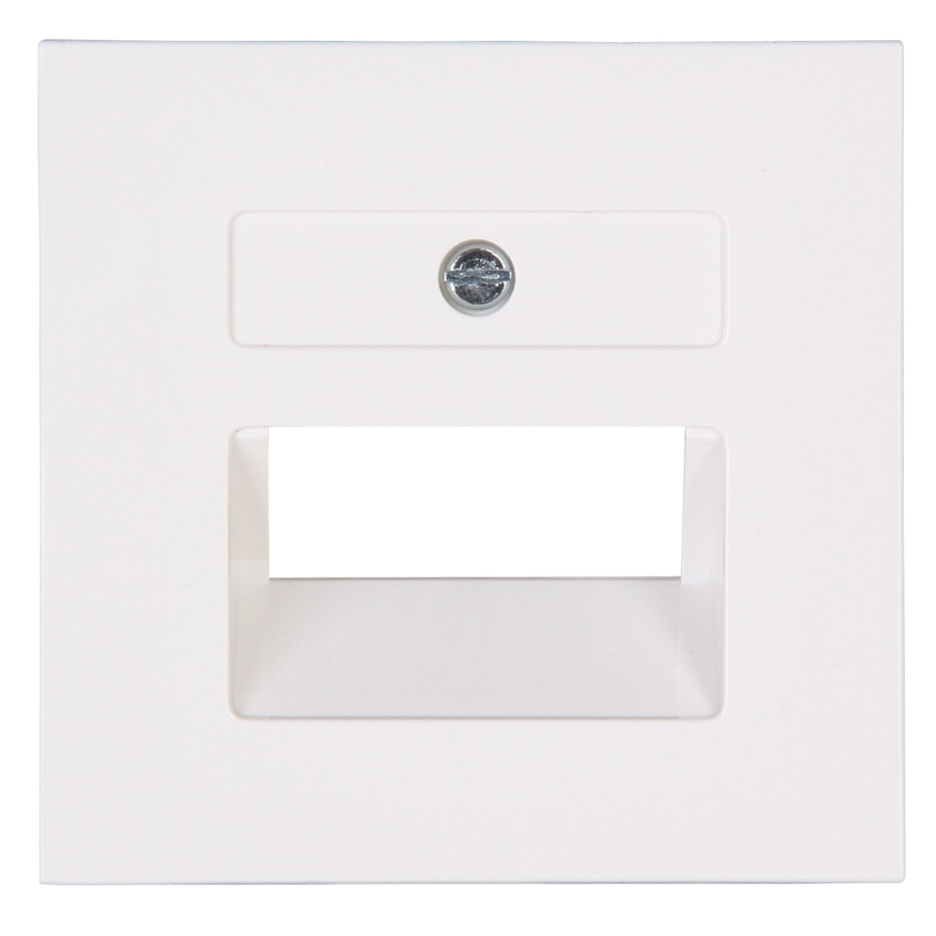 UAE deksel in design HK07 en de kleur wit voor UAE aansluitbus en databus met haakse uitgang, geschikt voor 1-2 aansluitingen met bevestigingsschroef M2,5x12mm. Beschermingsgraad IP20.