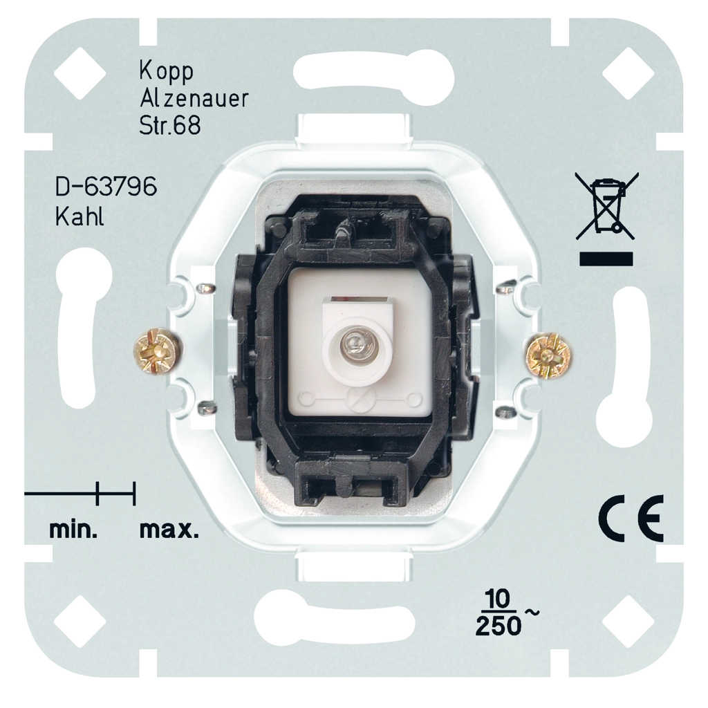 Kopp drukcontact (pulsdrukker) met 1 verbreekcontact en N-klem, 10A. Nuldraad vereist! Met klauw-/schroefbevestiging. Excl. schakelwip en afdekraam.