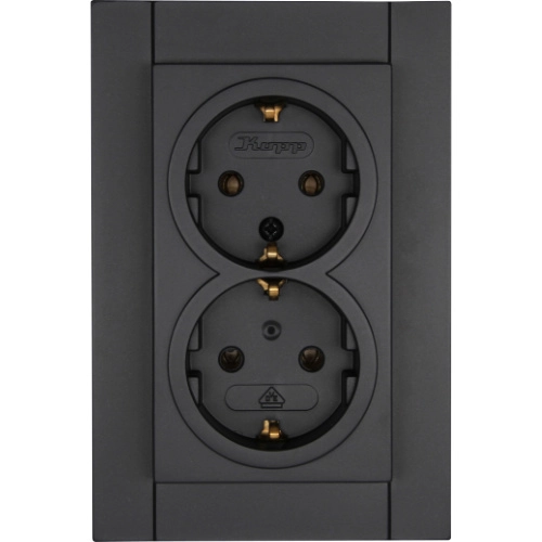 Kopp dubbel stopcontact met randaarde, HK07, antraciet. Geschikt voor een enkele (ronde) inbouwdoos.