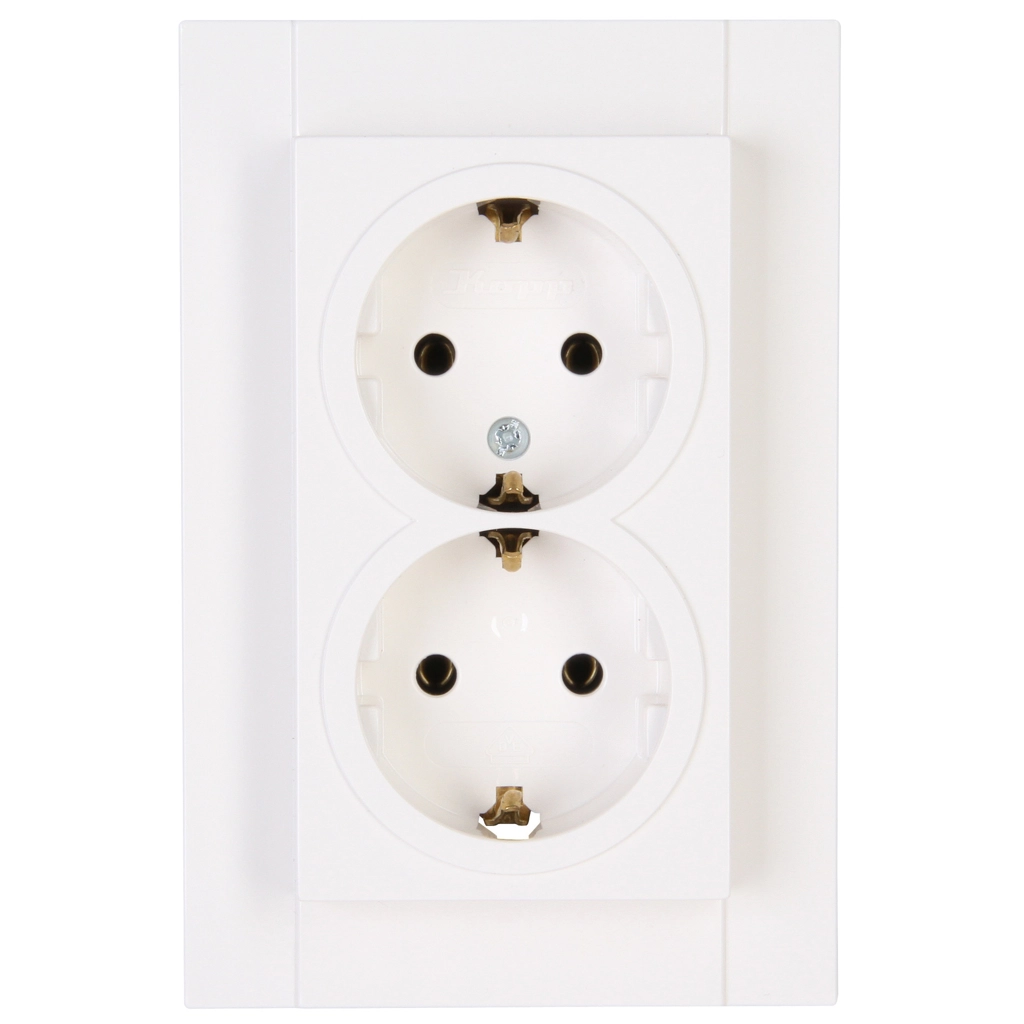 Kopp dubbel stopcontact met randaarde, HK07, helder wit glans (RAL 9010). Geschikt voor een enkele (ronde) inbouwdoos.