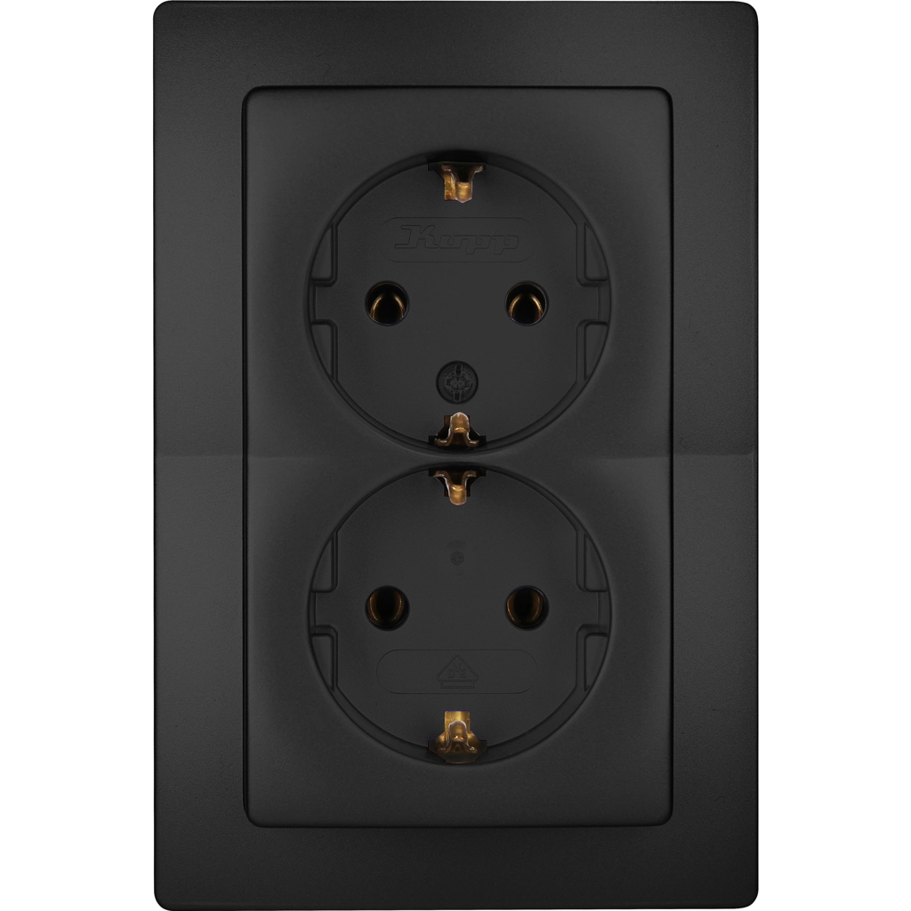 - Kopp dubbel stopcontact met randaarde, HK05, zwart mat. Geschikt voor een enkele (ronde) inbouwdoos. Voorraad:40 stuk(s)Verwachte levertijd:Voor 21u besteld, morgen in huis*- 18,88 7,07