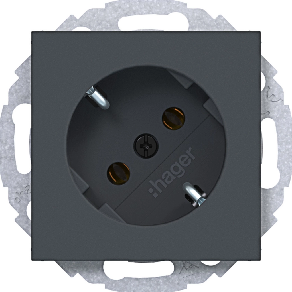 Hager Berker randaarde stopcontact met 45° gedraaide stekkerstand, A.1/A.8/C.1/C.8, antraciet mat. Met klauwbevestiging/spreidklemmen. Excl. afdekraam.