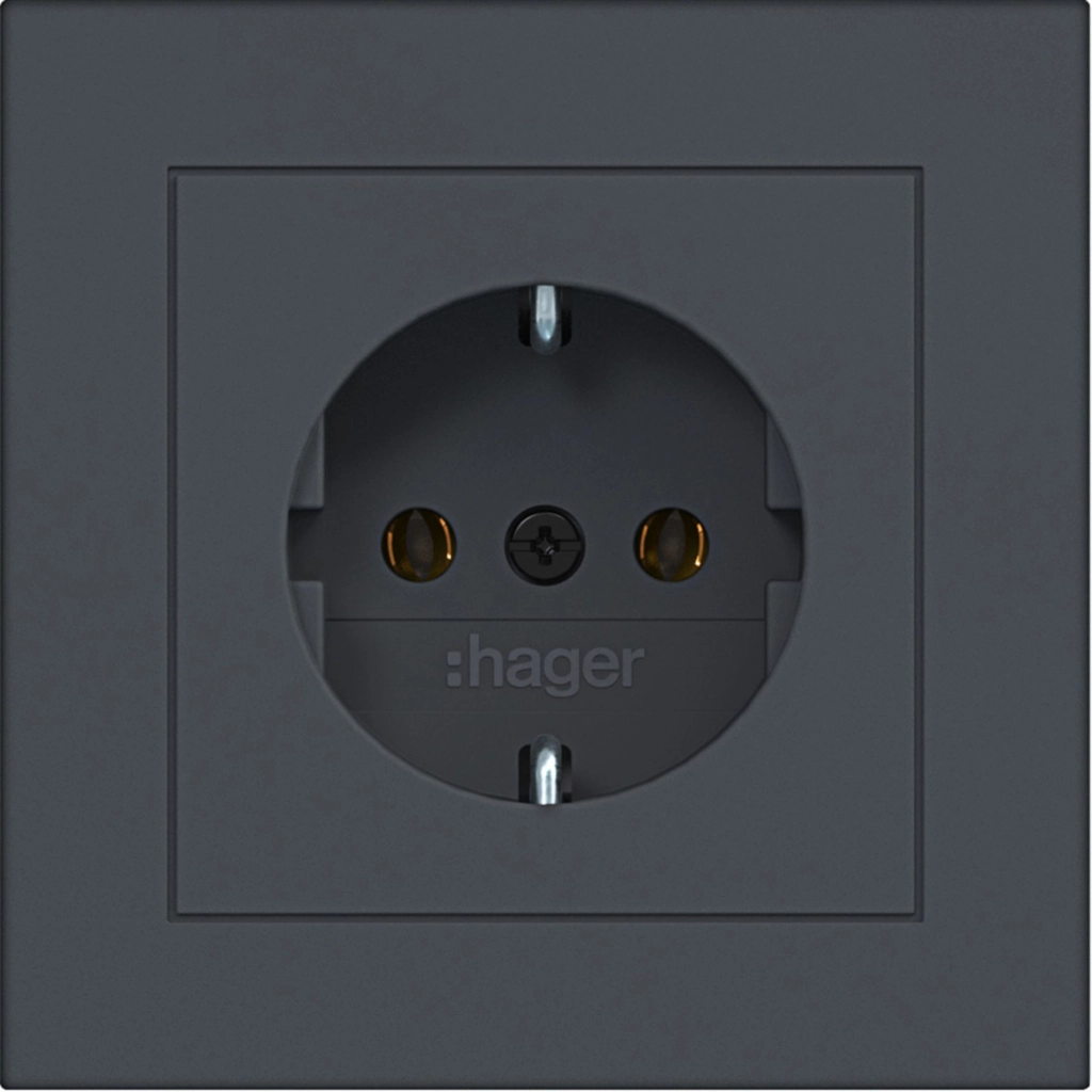 Hager Berker randaarde stopcontact met volle afdekplaat, voor afzonderlijke montage, antraciet mat. Met klauwbevestiging/spreidklemmen. Incl. afdekraam A.1.