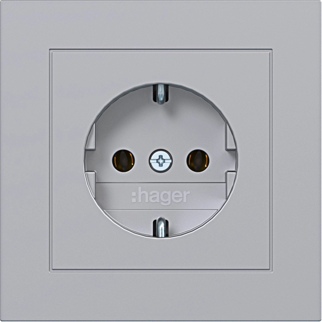 Hager Berker randaarde stopcontact met volle afdekplaat, voor afzonderlijke montage, titaan mat. Met klauwbevestiging/spreidklemmen. Incl. afdekraam A.1.