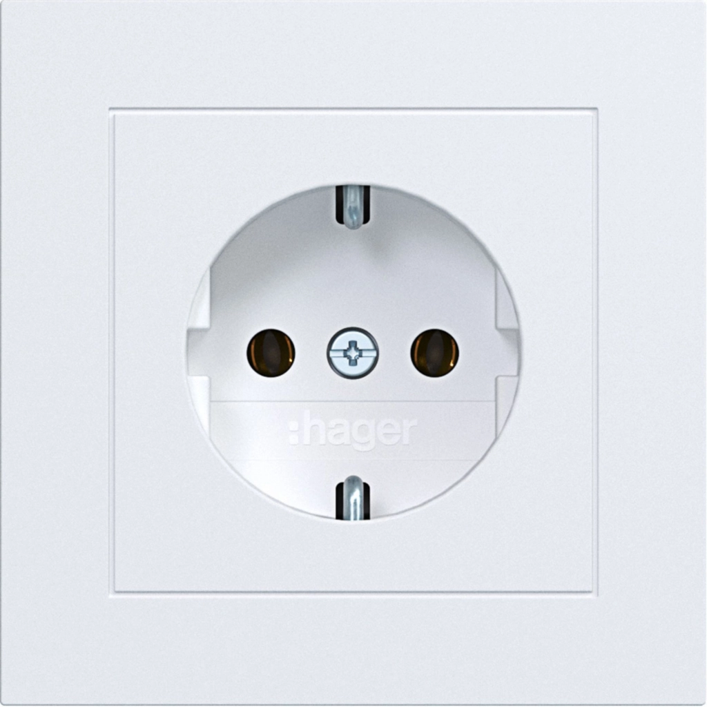 Hager Berker randaarde stopcontact met volle afdekplaat, voor afzonderlijke montage, lichtwit mat. Met klauwbevestiging/spreidklemmen. Incl. afdekraam A.1.
