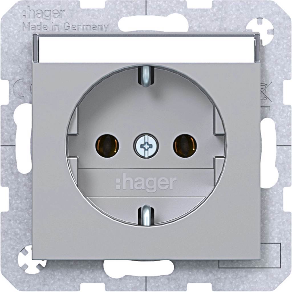 Hager Berker randaarde stopcontact met tekstveld, A.1/A.8/C.1/C.8, titaan mat. Met klauwbevestiging/spreidklemmen. Excl. afdekraam.