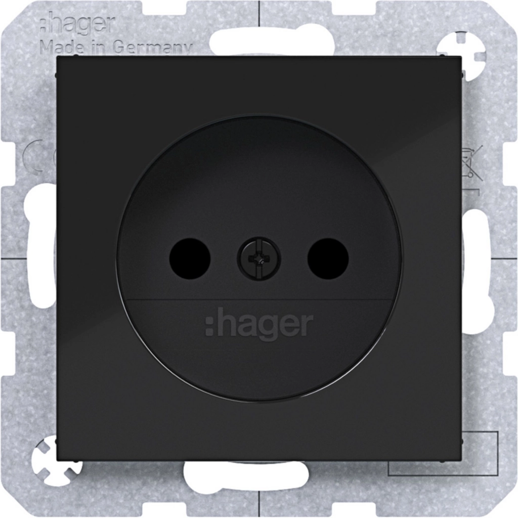 Hager Berker stopcontact zonder randaarde met verhoogde aanraakbeveiliging, A.1/A.8/C.1/C.8, nachtzwart glans. Met klauwbevestiging/spreidklemmen. Excl. afdekraam. Meer informatie »